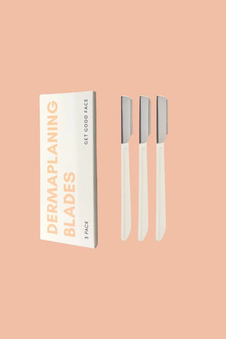 How to use: Cleanse your face and pat dry, remove the safety shield and ensure your blade is sterilised - our Bye Bitch sanitising spray is perfect for this! Apply our Lock It In oil to your skin to help the blade slip. This will also help avoid any skin irritation. Hold the skin tight with one hand, using the blade at a 45-degree angle, and make small upward strokes to remove dead skin cells and peach fuzz. Keep a tissue on hand to wipe the blade clean as you go. Once finished, sanitise your blade again. Wipe dry with a clean tissue and reapply the safety shield. Rinse your face with warm water and apply our Thirst Trap hydration serum. Avoid using on broken or inflamed skin.